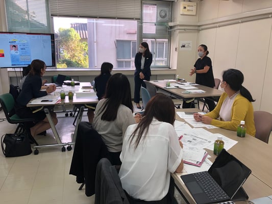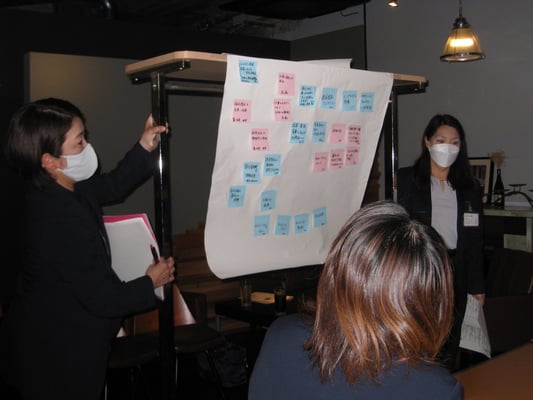 草案3つのうちの1つ(大学生向けキャリアセミナー)についてみんなで模擬で実施したことなどを報告しました。