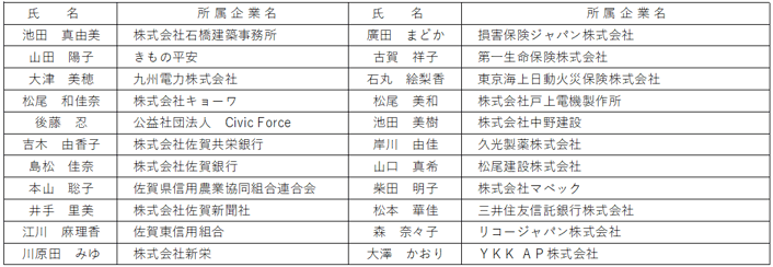 “SAGA WOMEN'S ACTION(女性の活躍推進佐賀県会議)”とは、女性の社会進出を考え、女性が個性と能力を発揮し、日本経済において活躍することができる社会の実現のために経済団体、地域社会が一体となって取り組むプロジェクトです。女性の活躍推進佐賀県会議の取り組みを進めるため、県内各企業から集まったメンバーが Jump Up Women SAGA(ワーキング グループ)を組織し、「重点活動項目」に資する事業についての検討や調査、自己研鑽など、経済界のリーダー(企画委員会)の下、核となり活動しています。